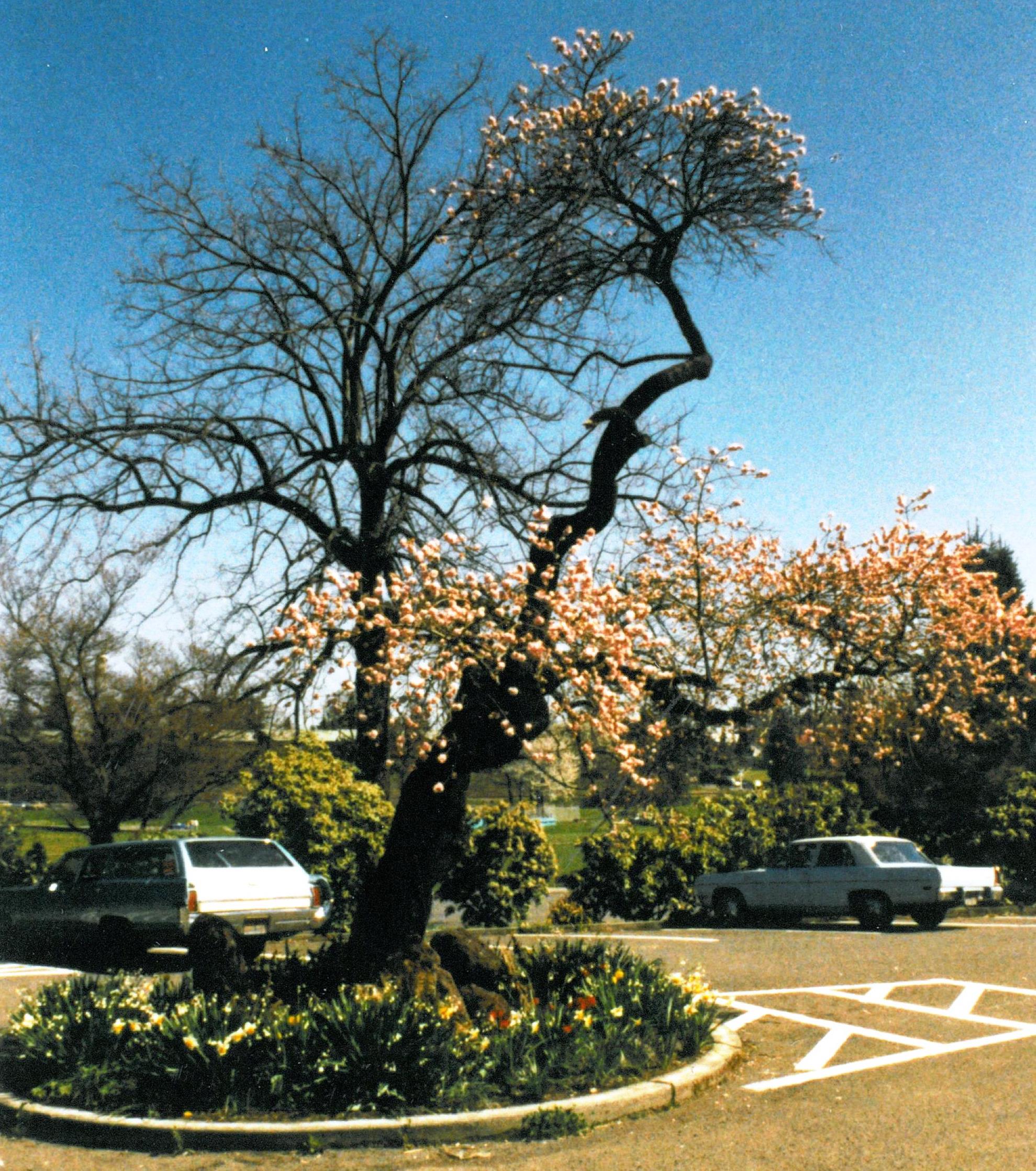 151015 TBT Week 2 The last of Seth Lewelling's Chinese Ornamental peach trees in the City Hall Parking Lot (circa 1960s)