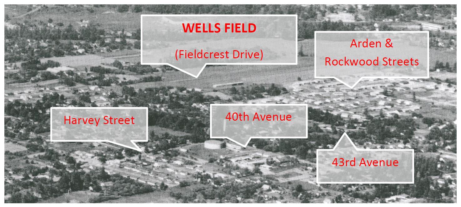 It's beginning to look a lot like... #TBT! Happy Thursday #Milwaukie! This week we head back to 1957 and east of Hwy 224 to an aerial view of the Wells (Wills) Air Field, owned and operated by local hardware store merchant Zon Wells. Located where Fieldcrest Drive now sits in the Lewelling Neighborhood, the runway stretched from 42nd Avenue east to about 49th Avenue. Wells Field was a dirt airstrip that was home to several small private aircraft from the 1920s until the property was developed into housing in the 1960s. The photo shows the air field and other prominent landmarks in NE Milwaukie - including the municipal water reservoir at 40th Avenue and Harvey Street and Johnson Creek cutting across the top of the photo. Photo Credit: our partners at the #MilwaukeiHistoricalSociety - visit them on Facebook here: http://ow.ly/UioOe #MilwaukieTBT #Lewelling #WellsField #WillsField #Fieldcrest