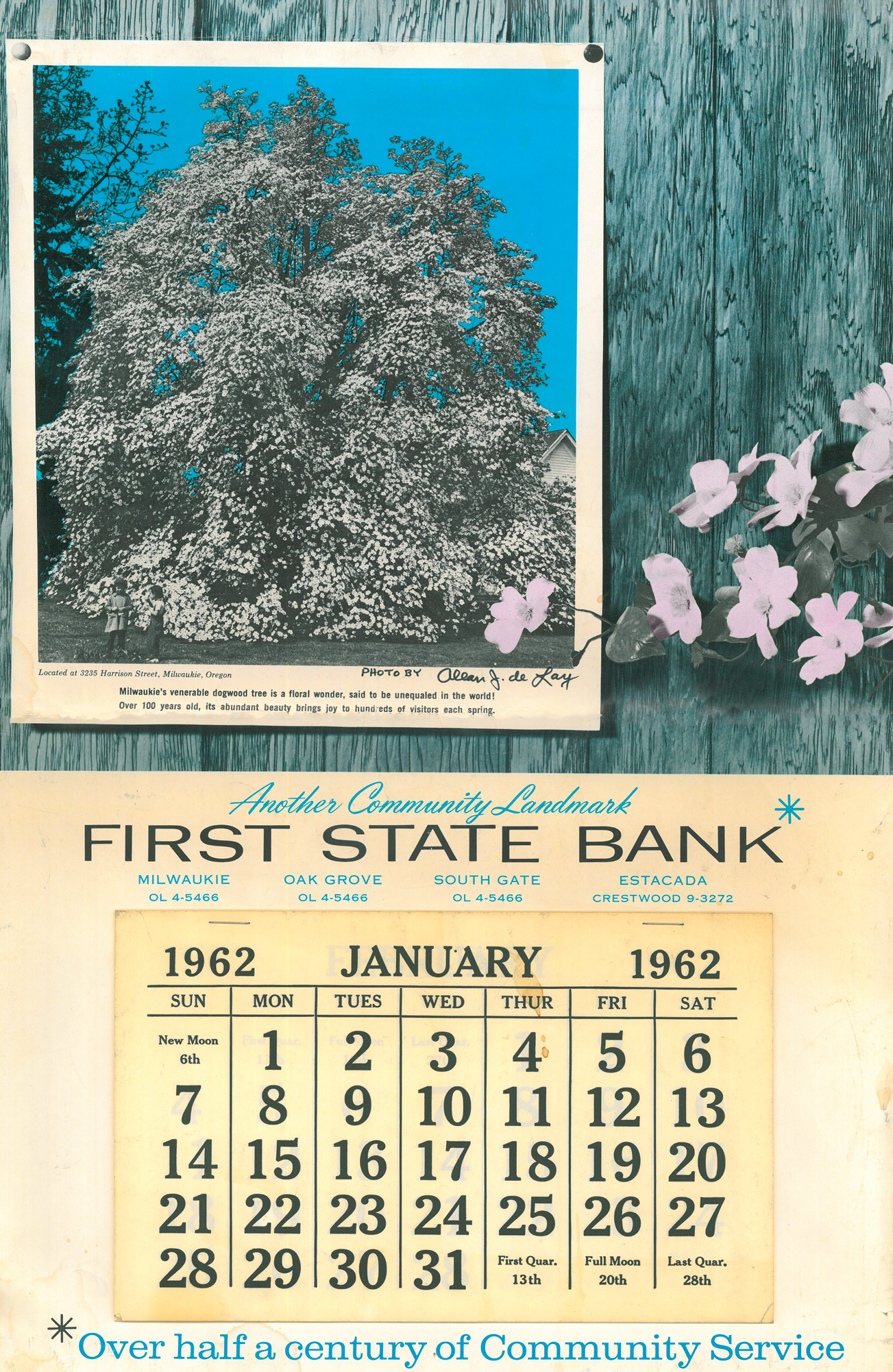 160519 TBT Week 33 - 1962 Calendar published by First State Bank of Milwaukie featuring the world famous Milwaukie Dogwood Tree